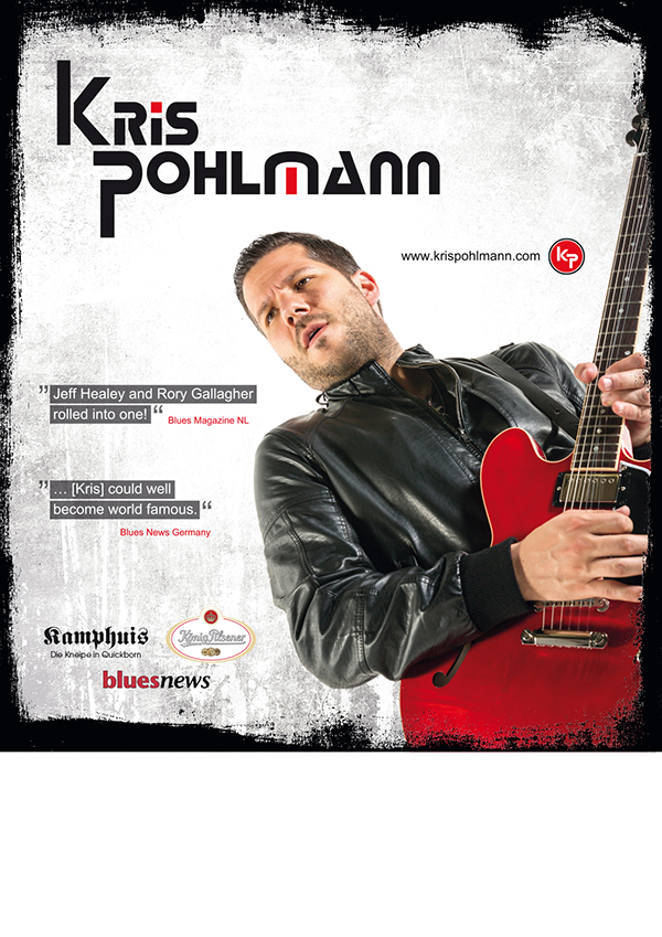 Songs from ‘New Resolution’ still feature in today’s live performances. Fan favourites ‘Got To Be The Blues’ & ‘Fallin’ Down’ are just two of the concert highlights. So, to celebrate this milestone the award-winning guitarist/singer/song-writer is touring all over Europe, where he is renowned for his high energy, sweaty and endlessly entertaining shows. Kris Pohlmann has built up a loyal fan base across Europe. With Freddie King, Gary Moore, Rory Gallagher and Status Quo as his biggest influences, KRIS POHLMANN concerts are guaranteed to bring explosive blues-rock.